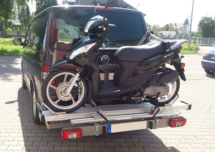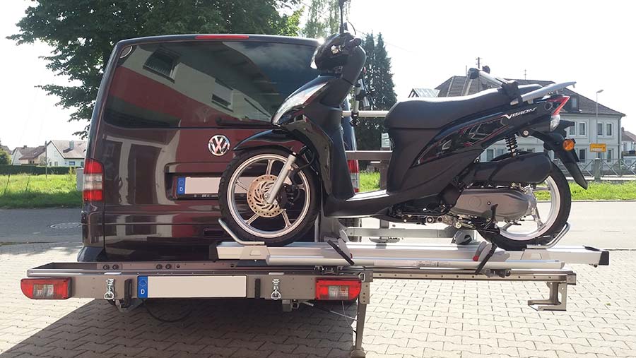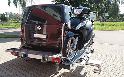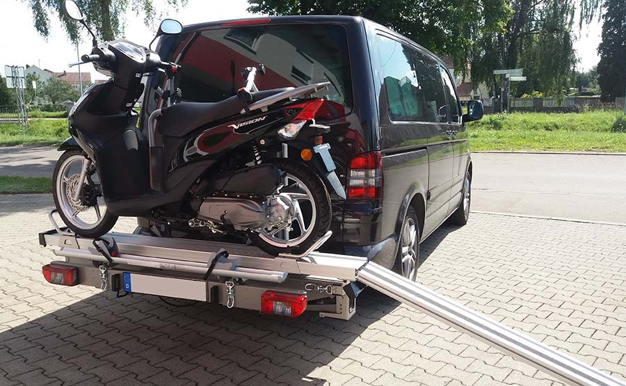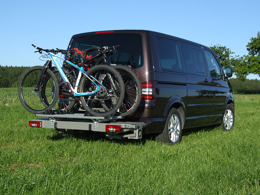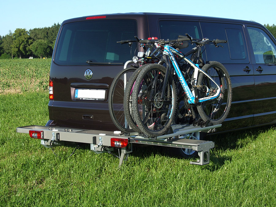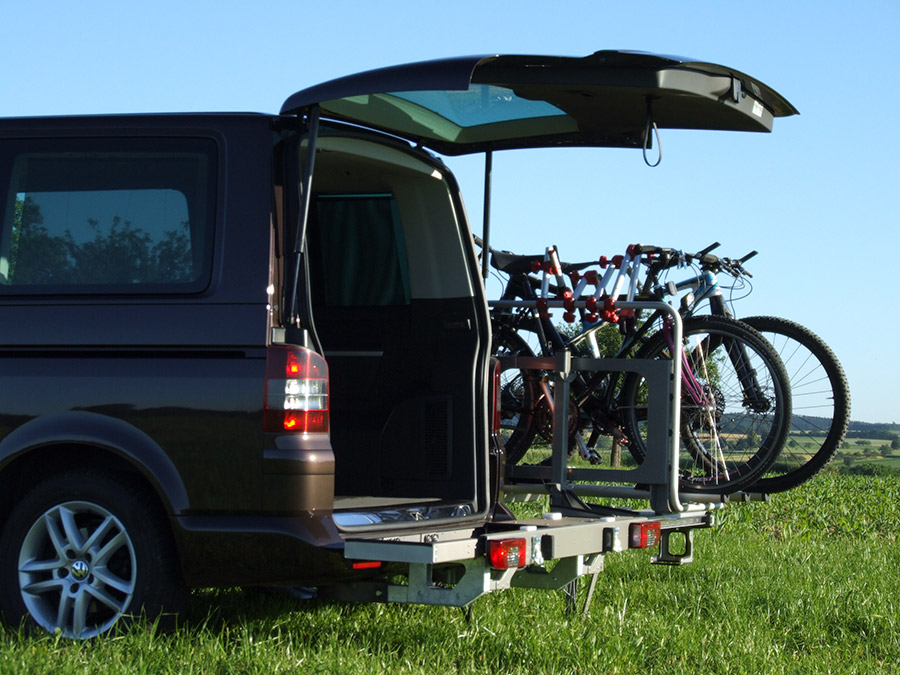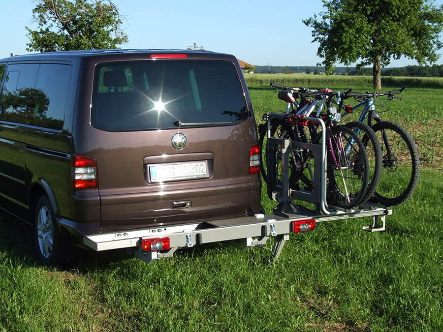 Hinweis: Das verschieb- und schwenkbare Heckträger ist auf eine Tragfähigkeit von 150 kg ausgelegt. Die Herstellerangaben über die Belastbarkeit der Hinterachse sind zu beachten.