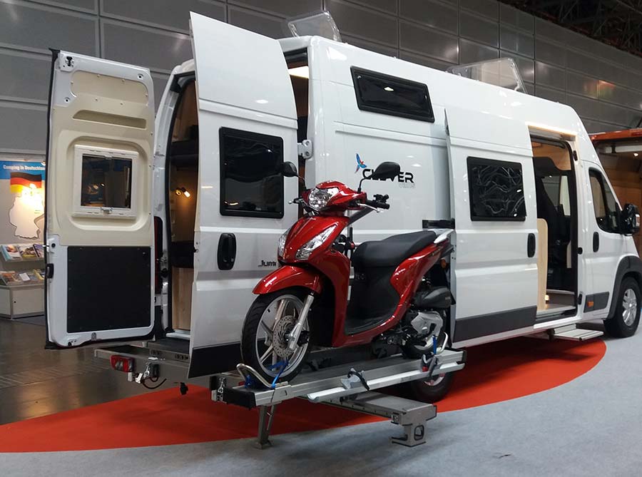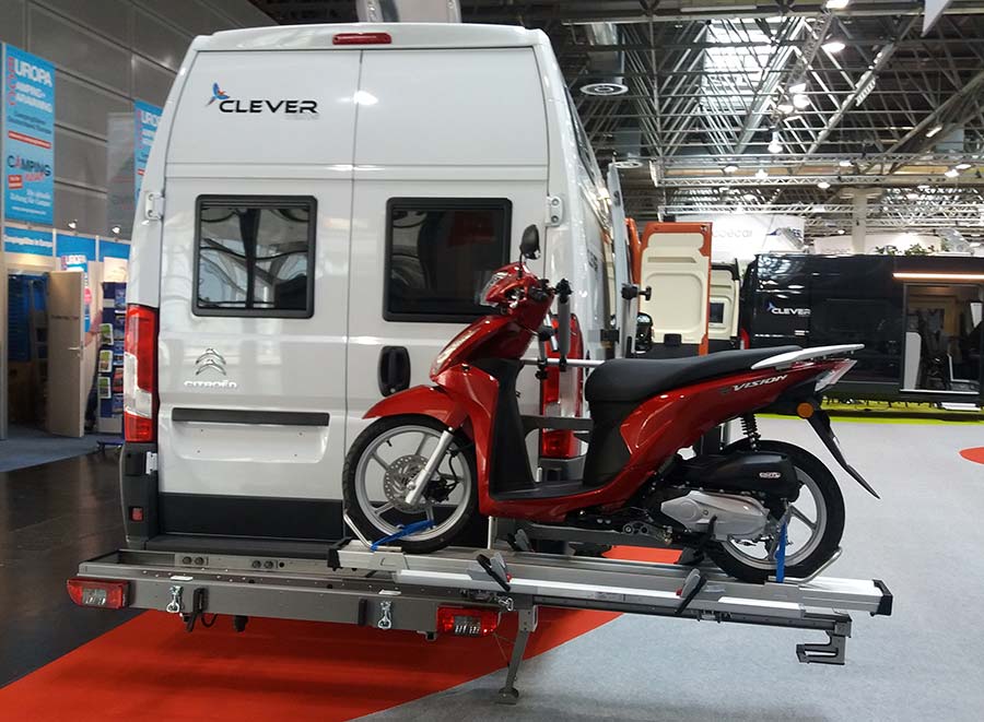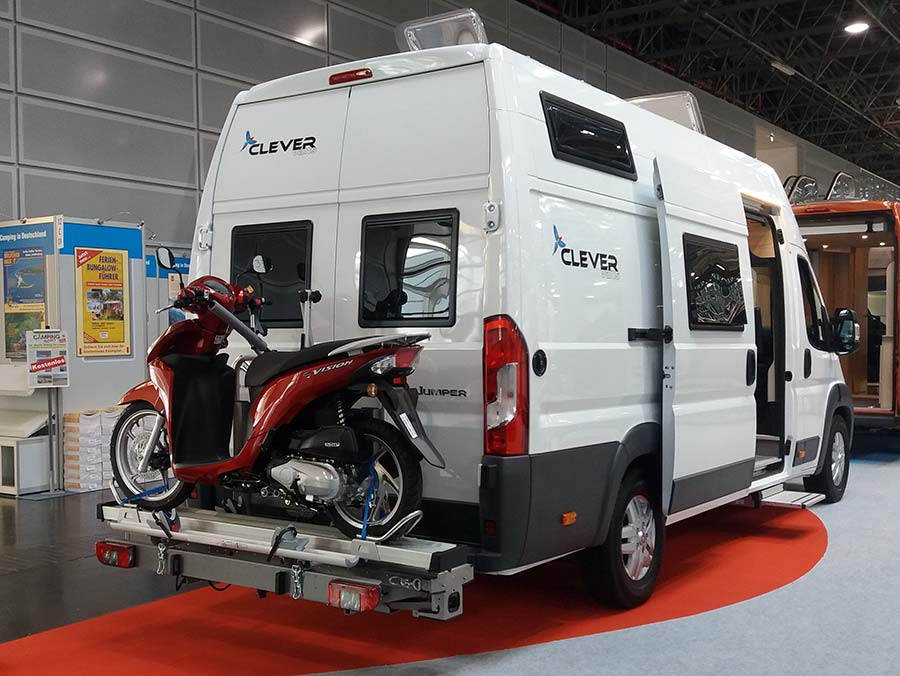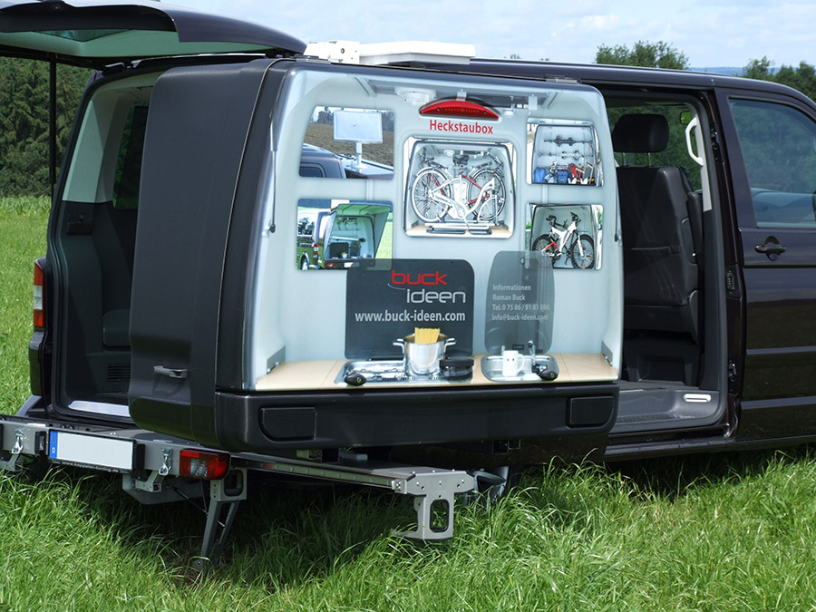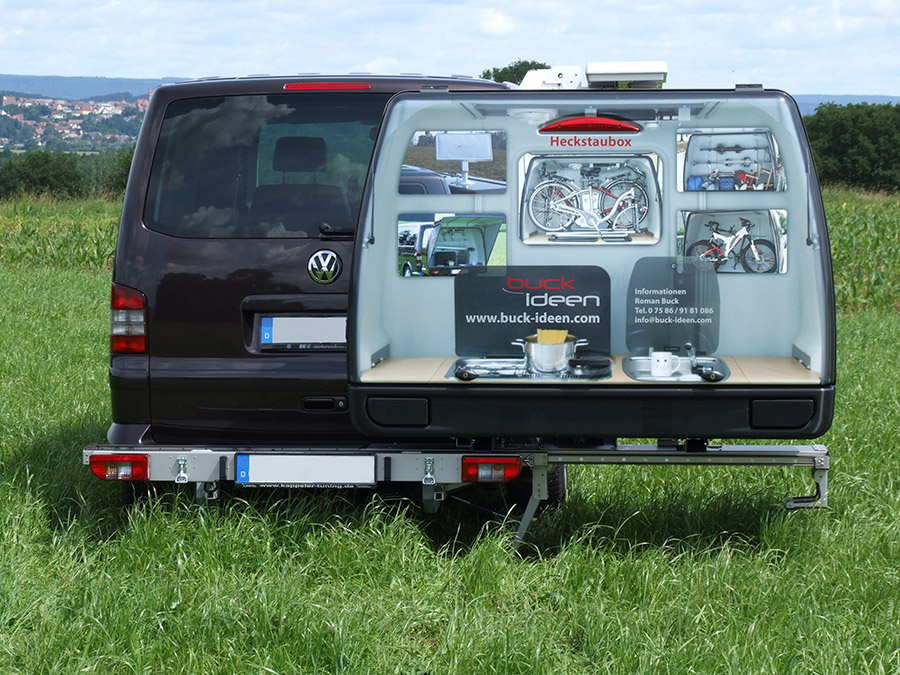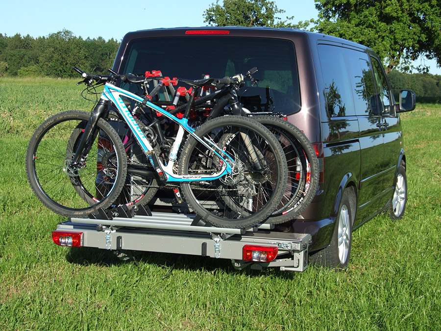 Hinweis: Das verschieb- und schwenkbare Heckträger ist auf eine Tragfähigkeit von 150 kg ausgelegt. Die Herstellerangaben über die Belastbarkeit der Hinterachse sind zu beachten.